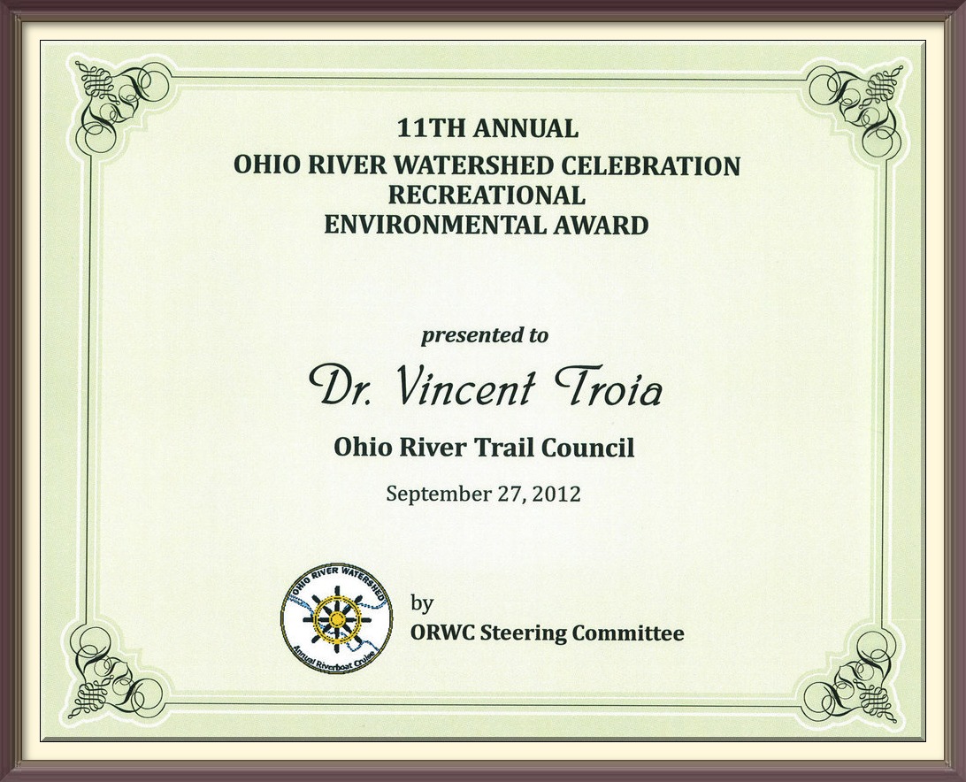 The Ohio River Watershed Celebration focuses on the efforts and impacts that small local organizations have had on the restoration of their watershed. These groups are run by dedicated volunteers addressing local issues, but are a very important “cog” in the overall Ohio River Watershed recovery. In 2012 the Ohio River Trail Council received the Ohio River Watershed Celebration Recreational Environmental Award.