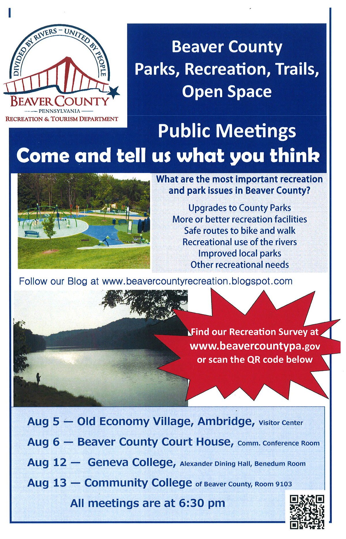You can follow the planning process and share your comments by visiting the project blog at http://beavercountyrecreation.blogspot.com.